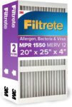 2-pack of 3-month pleated 1” Filtrete 20x25x1 MPR 2800 AC Furnace Air Filter