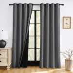 Sizes & Fit: Two 42″W x 63″L blackout curtain panels with six 1.6-inch grommets on each.