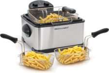 Three separate baskets allow you to fry multiple foods simultaneously.