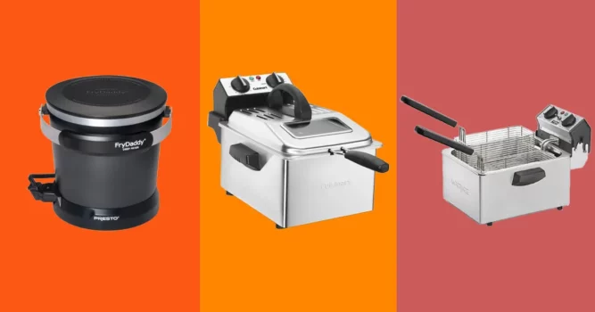 The Presto 05411 GranPappy Electric Deep Fryer offers a 6-cup oil capacity with 1500 watts of power, featuring a fixed 375°F temperature and non-stick interior for easy cleaning, all in a compact 9.1 x 8.8 x 8.5-inch, 4.2-pound design. The Vexon 1800W 5 Liters/21 Cups Large Electric Deep Fryer boasts a 5-liter capacity, adjustable thermostat up to 375°F, and stainless steel durability. Classic Cuisine’s 4-Liter Electric Oil Fryer provides adjustable heat and an odor filter, while the Presto 05442 CoolDaddy ensures safety with cool-touch and an 8-cup capacity.