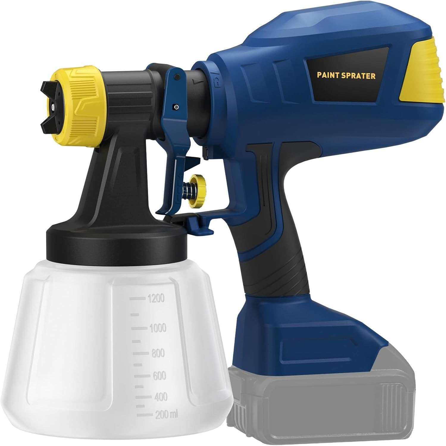 Brushless cordless paint sprayer compatible with Dewalt 20V battery.