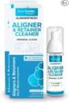 Dual-purpose foam cleans aligners and whitens teeth effectively.