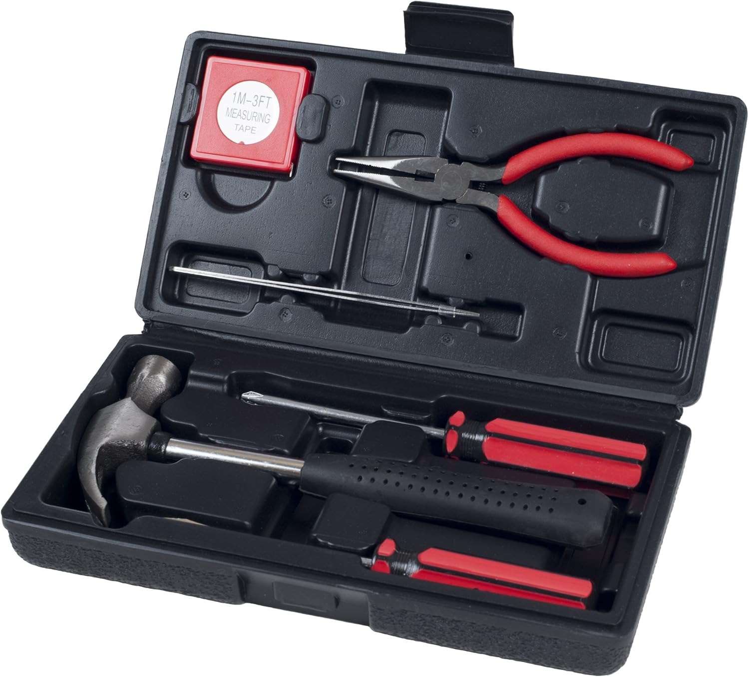 Includes screwdrivers, pliers, hammer, tape measure, and more.